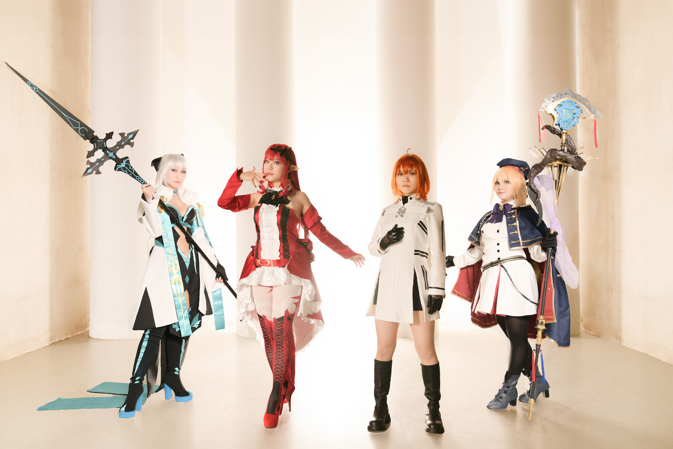 藤丸立香:碧さん( @hkdrntm0x0 ) アルトリア・キャスター:しのさん( @cameranosi ) バーヴァン・シー:ひづきさん( @hidu0305 ) モルガン:リッカさん( @rikkayh )